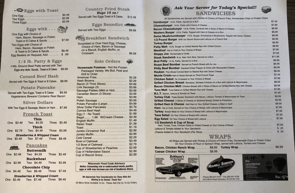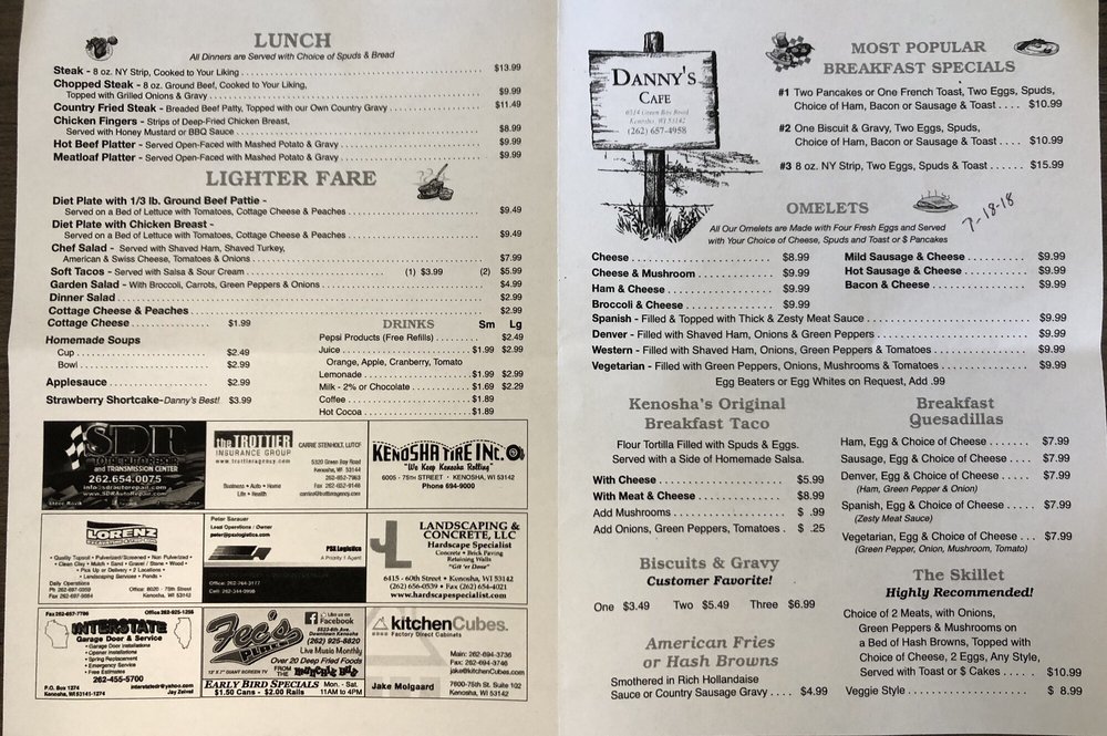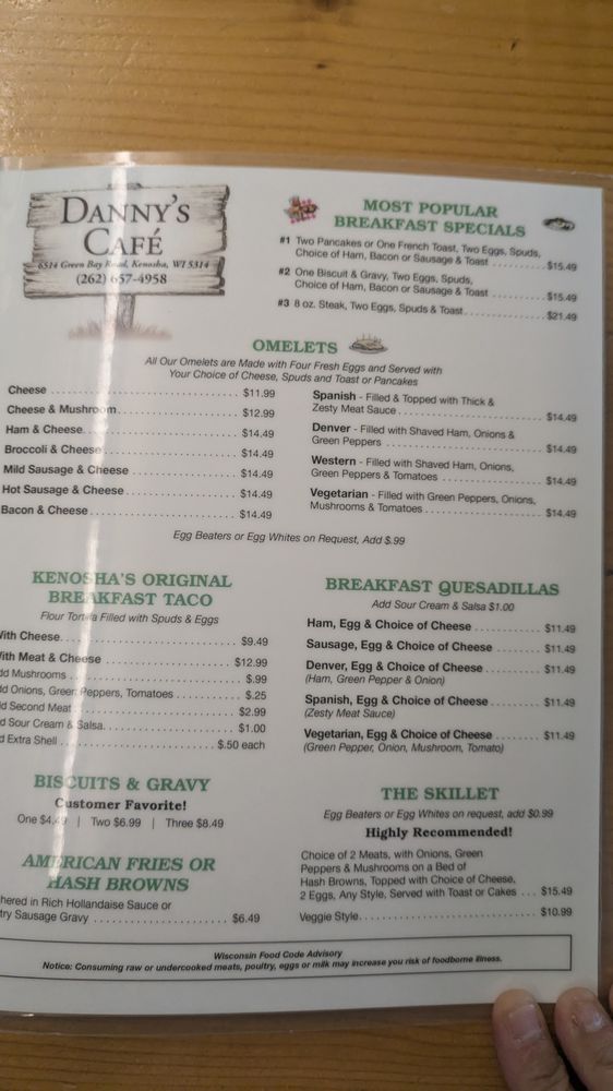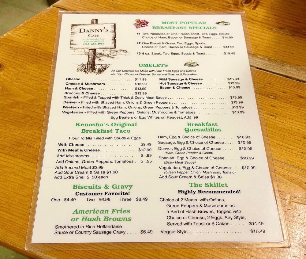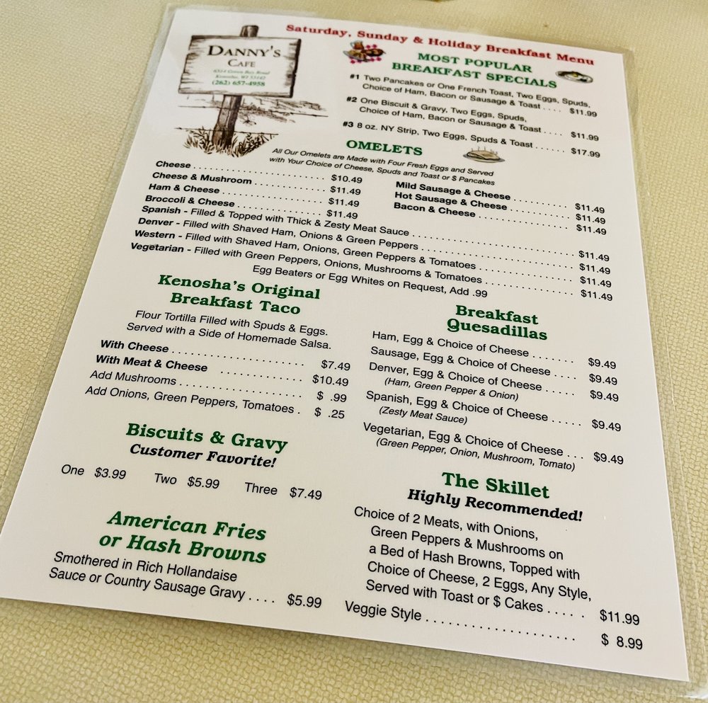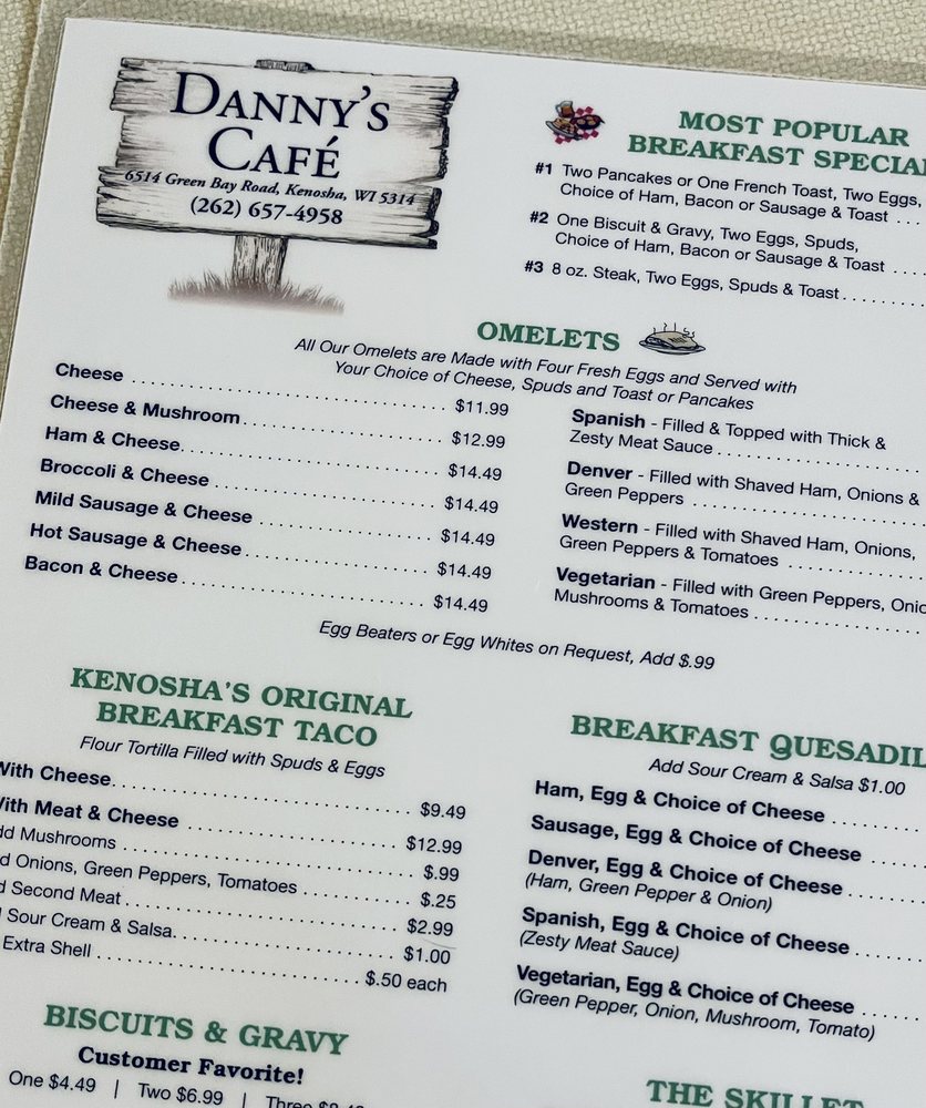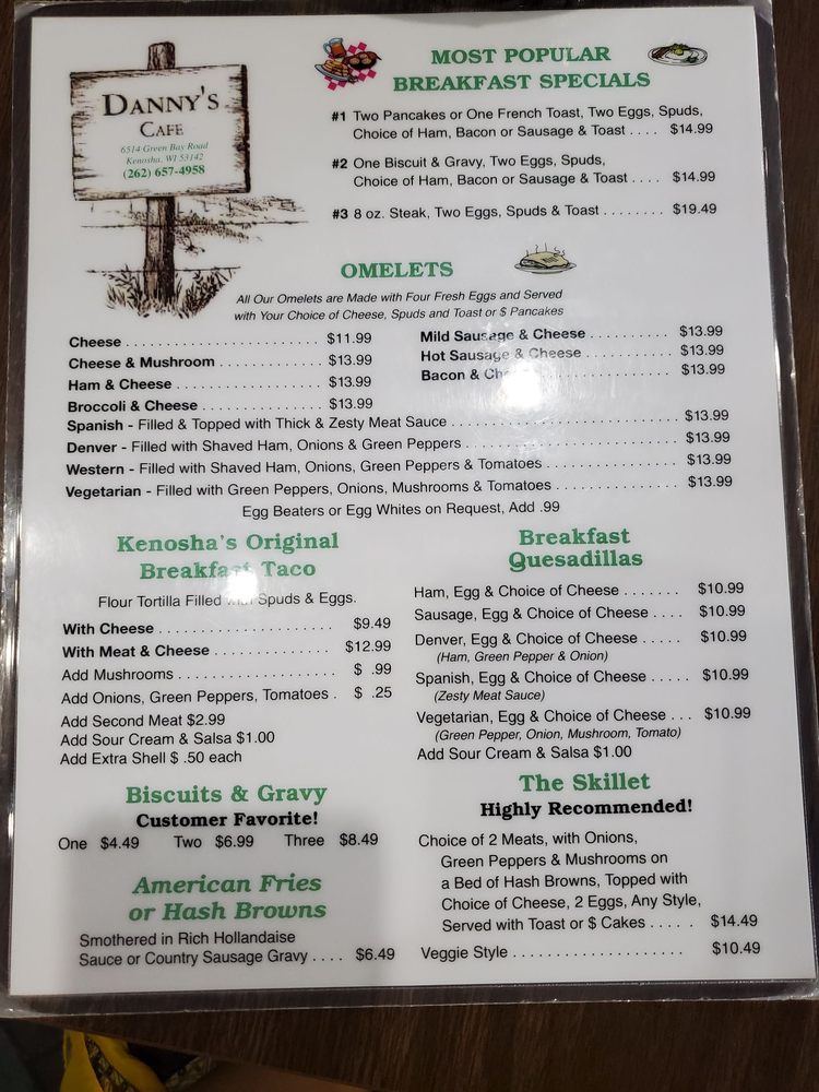 Danny's Cafe in Kenosha, WI is a breakfast and brunch hotspot that offers a cozy atmosphere and top-notch service. Known for their famous Country Fried Steak with brown gravy and mashed potatoes, customers rave about the perfectly cooked steak and creamy mashed potatoes. The menu features breakfast specials like pancakes, French toast, and omelets, as well as Kenosha's Original Breakfast Taco. With fast service, reasonable prices, and a friendly wait staff, Danny's Cafe is a favorite among locals and visitors alike. Customers praise the quality of the food and the welcoming vibe of this family-owned establishment. Whether you're craving Eggs Benedict or fluffy pancakes, Danny's Cafe is a must-visit spot for a delicious breakfast experience.